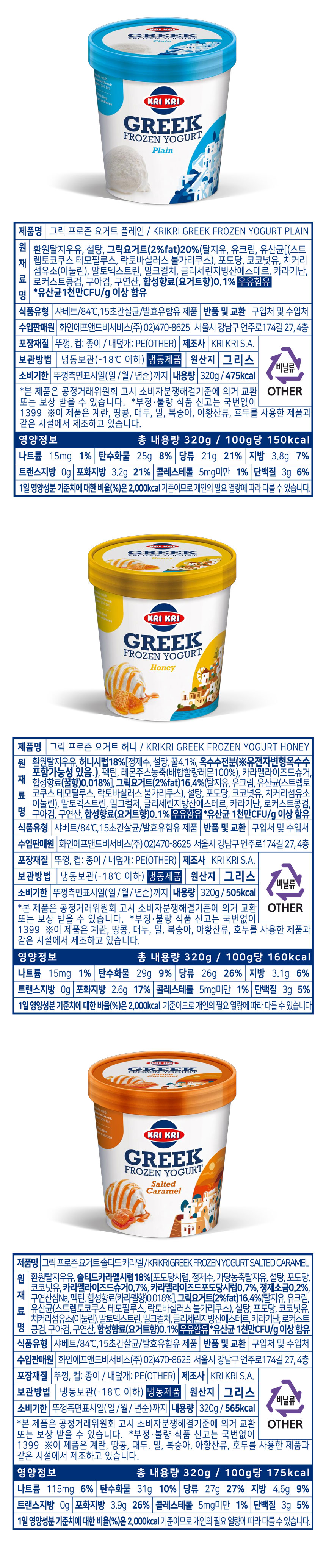 크리크리 그릭 프로즌 요거트 3종(플레인/허니/솔티드 카라멜) 골라담기(개 당 6,230원)